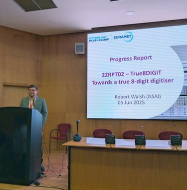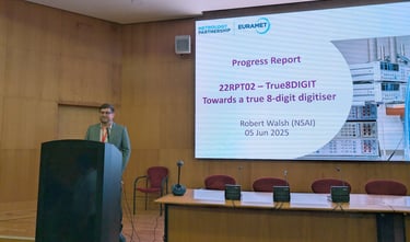Taking advantage of the opportunity provided by the Portuguese Institute for Quality (IPQ) through the joint organization of the annual meetings of the three subcommittees of the EURAMET Technical Committee for Electricity and Magnetism — SC DC and Quantum Metrology, SC Low Frequency, SC Power and Energy, combined with an European Metrology Networks / Smart Electricity Grids meeting, and a full-day open session dedicated to technical presentations held on June 5th — NSAI presented the objectives of the True8DIGIT project, along with recent results from the activities conducted across its four technical work packages.